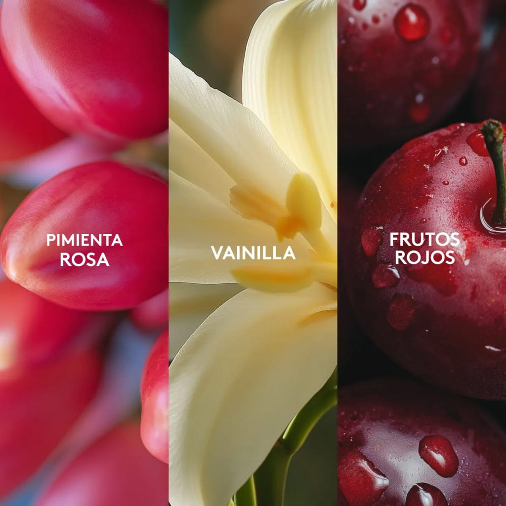 • Notas de Salida: Frambuesa, maracuyá, limón, almendra, manzana roja, ciruela.