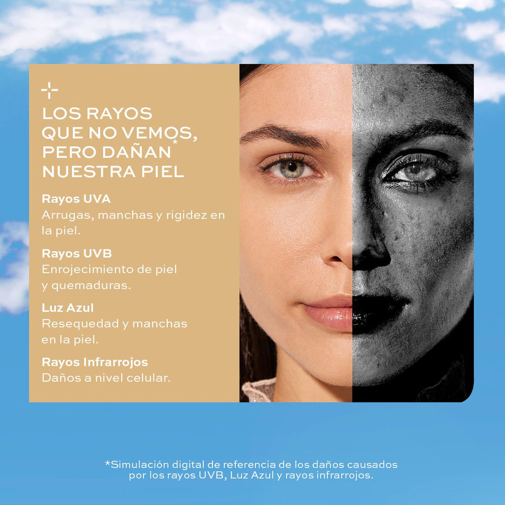 Un protector solar facial anti-fotoenvejecimiento con protectores de colágeno, que otorga 24H de hidratación intensa con una textura ultraligera y acción antioxidante