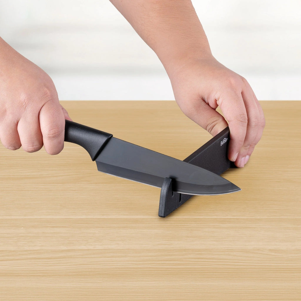El cuchillo que te permite cortar y afilar es el Afila Cuchillo Betterware. Esta solución para tu cocina cuenta con protector con afilador de cuchillos integrado brindando el máximo filo para tus alimentos.